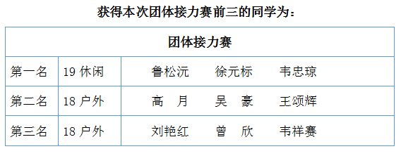 本次比赛分为速度赛和团体接力赛,速度赛有男子组和女子组。本次参赛同学为球盟会官网入口全体员工,其中主要参赛选手为18户外专业员工和19户外专业员工。本次扁带比赛男子运动员86人,女子41人,团体接力赛(两男一女)9组,共计147名运动员。