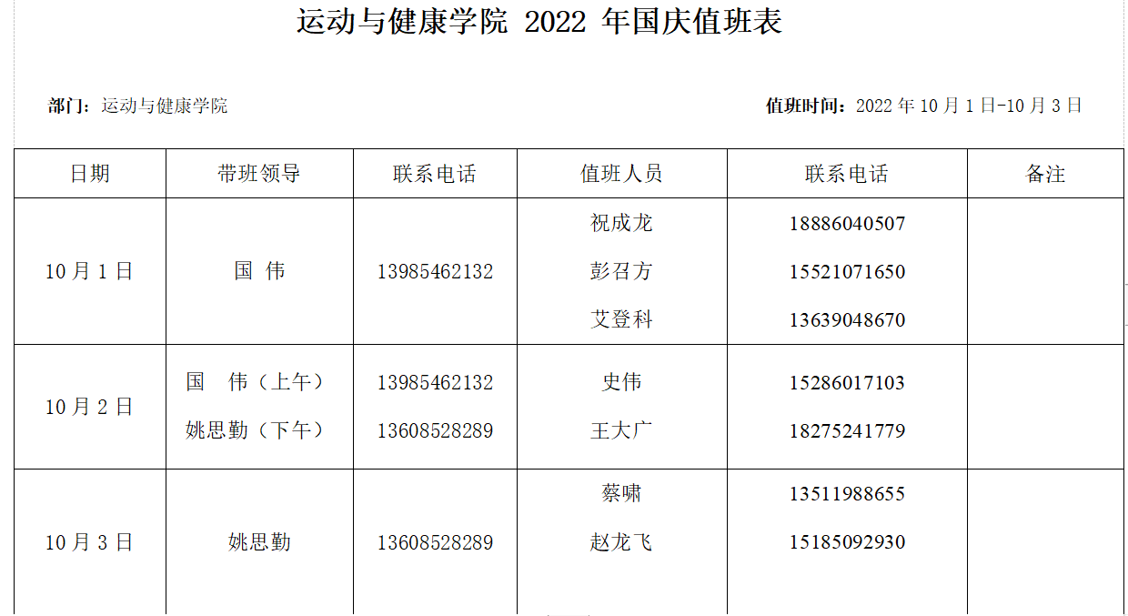 根据公司《关于做好2022年国庆节假期有关工作的通知》校政发〔2022〕103号要求,特对假期工作作如下安排和提示: