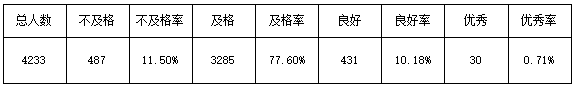 由表4可知:2023年毕业年级参与体质测试总人数为4233人,不及格人数487人,占比11.50%;及格人数3285人,及格率77.60%;良好人数431人,良好率为10.18%;优秀人数30人,优秀率为0.71%。(注:2023年球盟会官网入口毕业班级共计53个行政班,其中2018级20个班,2019级33个班,五年制班级毕业生体质测试成绩为大四年级体质测试成绩,四年制因实习未参加大四年级测试的班级,毕业成绩追溯到大学三年级,其中社会体育指导与管理、休闲体育、药事管理四年制班级,毕业成绩为大学四年级体质测试成绩)。